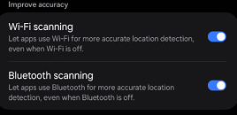 Open Location Services and check that: Wi-Fi Scanning is enabled, Bluetooth Scanning is enabled.