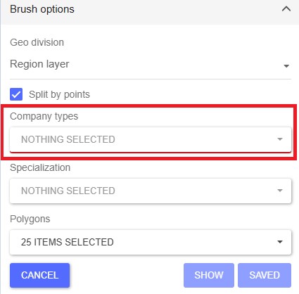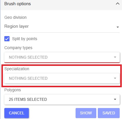 The Brush options window will open. Select Geo division by City layer.
