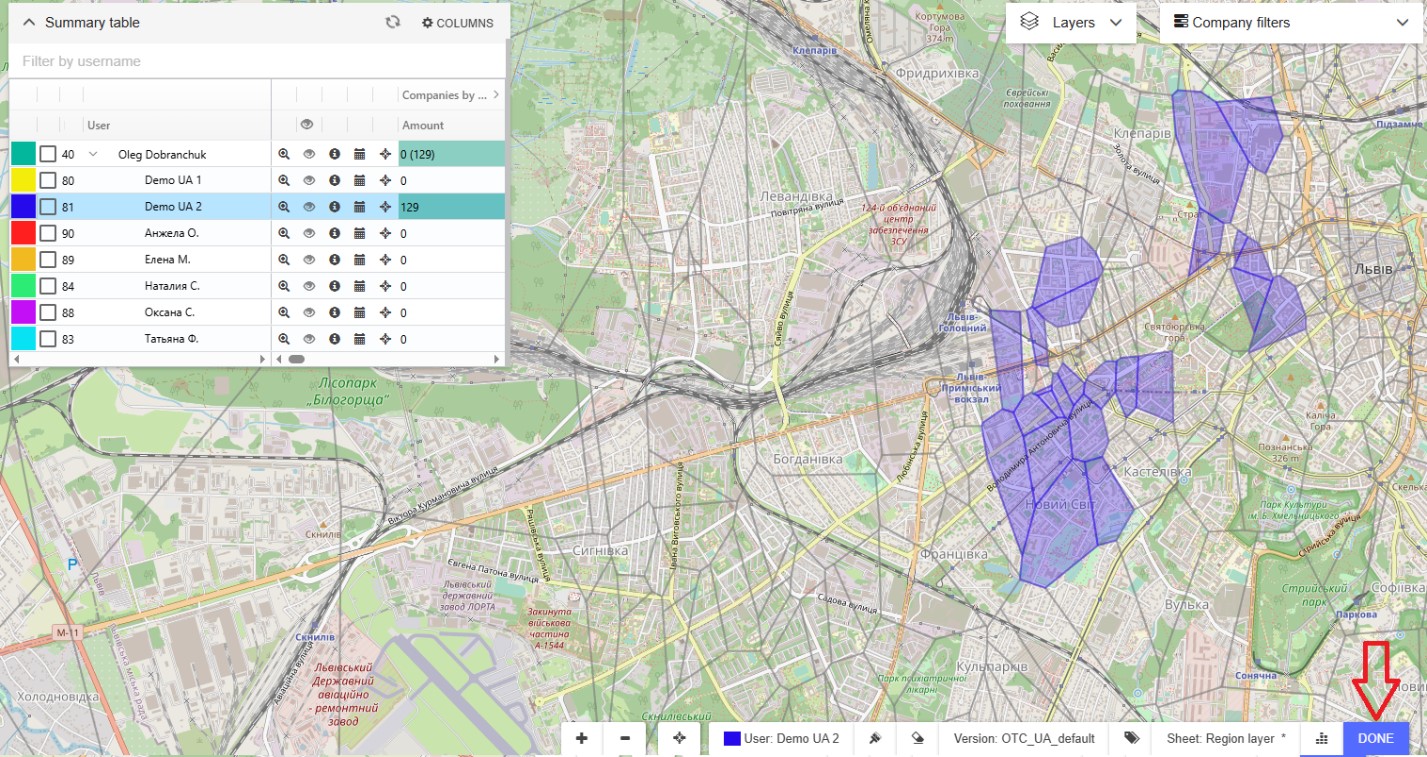 Select the User to whom you wish to assign the territory by clicking on the color indicator next to their name.