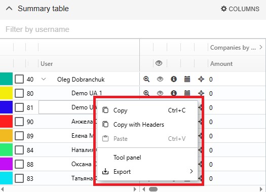 All data related to polygons displayed in the Pivot Table can be exported to your local computer in Excel or CSV format.