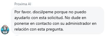 El chatbot Proxima AI (asistente virtual) se abrirá automáticamente con un saludo en todo tipo de dispositivos. En la ventana del chatbot, introduce tu consulta en la barra de búsqueda.