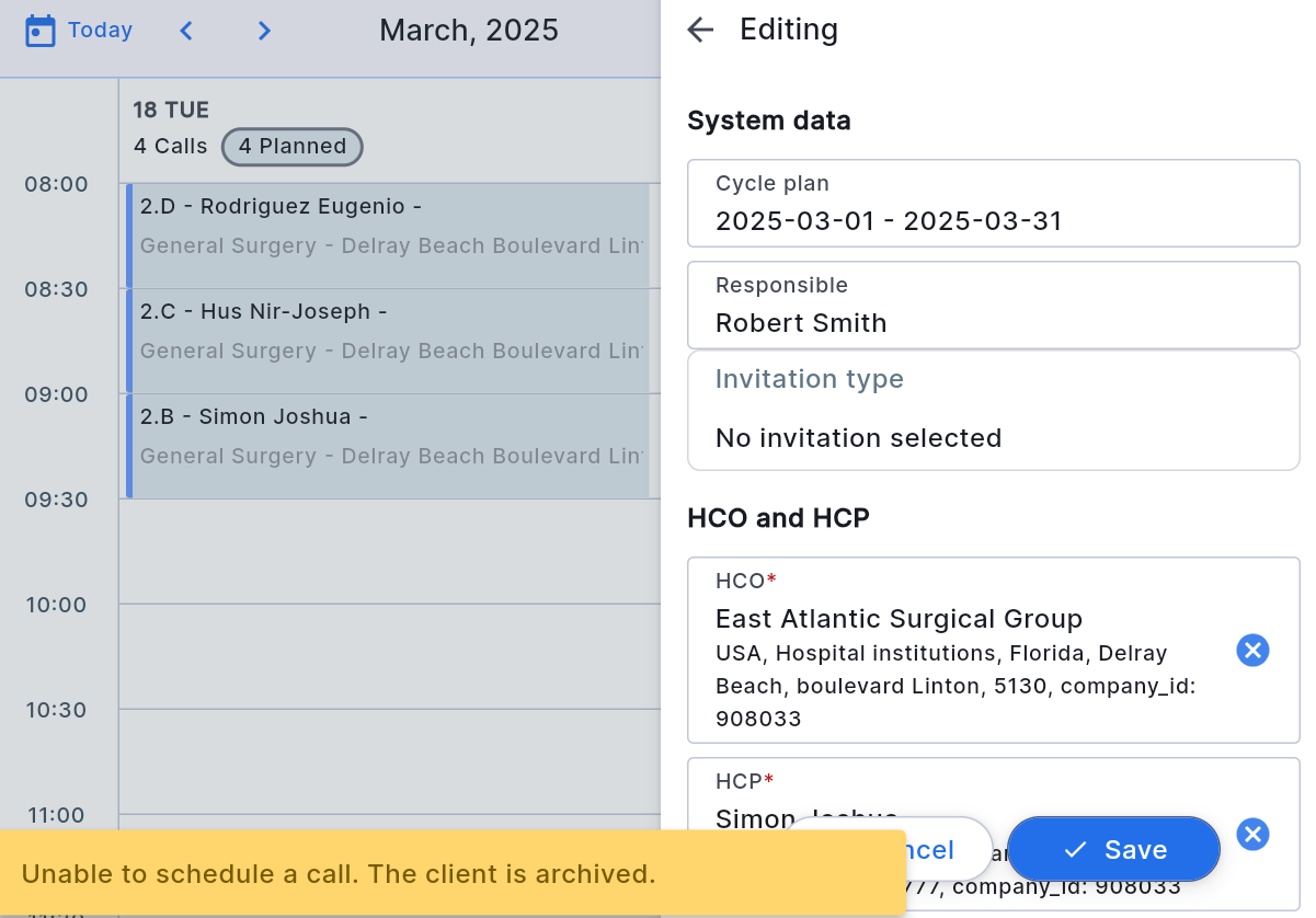 Jeśli pojawi się komunikat informujący, że klient lub firma jest zarchiwizowana, wykonaj następujące kroki (przykład dla klienta):