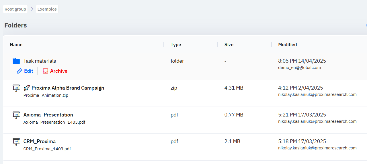 Эти файлы могут быть как для внутреннего использования пользователями СРМ внутри компании, так и для использования на визитах к клиентам.
