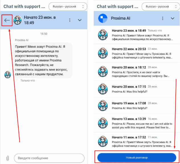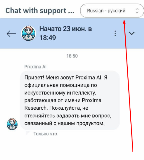 Чтобы начать использовать чат-бот Proxima AI, достаточно просто нажать на модуль «Помощь».
