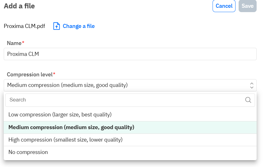 Під час завантаження .PDF файлів система запропонує стиснути їх.