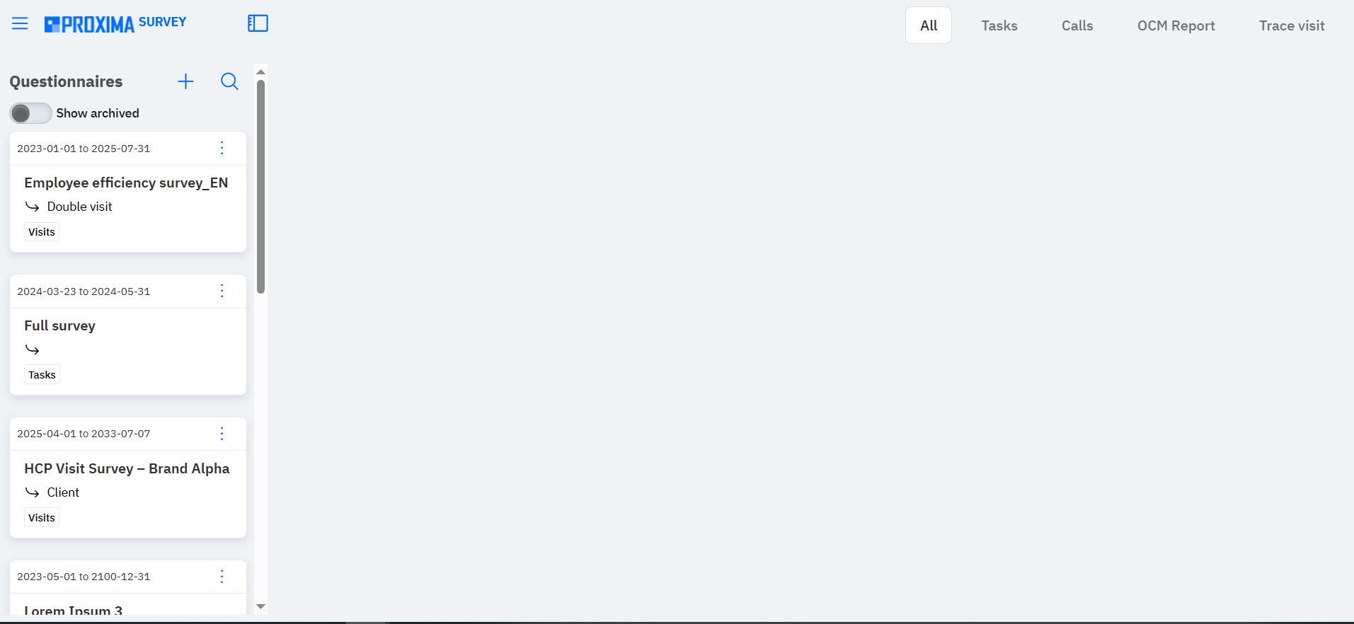 Зліва відображається список існуючих анкет