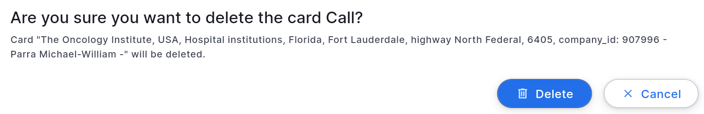 - Ўчирмоқчи бўлган фаолият карточкасини танланг. Экранинг пастки қисмида Ўчириш тугмаси пайдо бўлади.